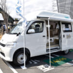 同モデルは、ベース車両にトヨタ・ライトエースバンを採用し、ボディサイズは全長4045mm×全幅1665mm×全高2250mmとなり、ハイルーフ仕様とすることで室内下部のフルフラットベッドは全幅1050mm(1200mm)×全長1850mmサイズで大人二人がしっかり就寝することができます。