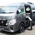 長らくバンコンはハイエースと考えられてきましたが、これからはキャラバンが失地回復を果たすことになるかもしれません。京都のキャンピングカービルダーのアルフレックスが同イベントに持ち込んだ新作バンコンバージョンはいずれもキャラバンベース。イチオシはラグジュアリー・トラベルホームのキャッチが用意された「Cabellia-SL(キャベリアSL)」です。