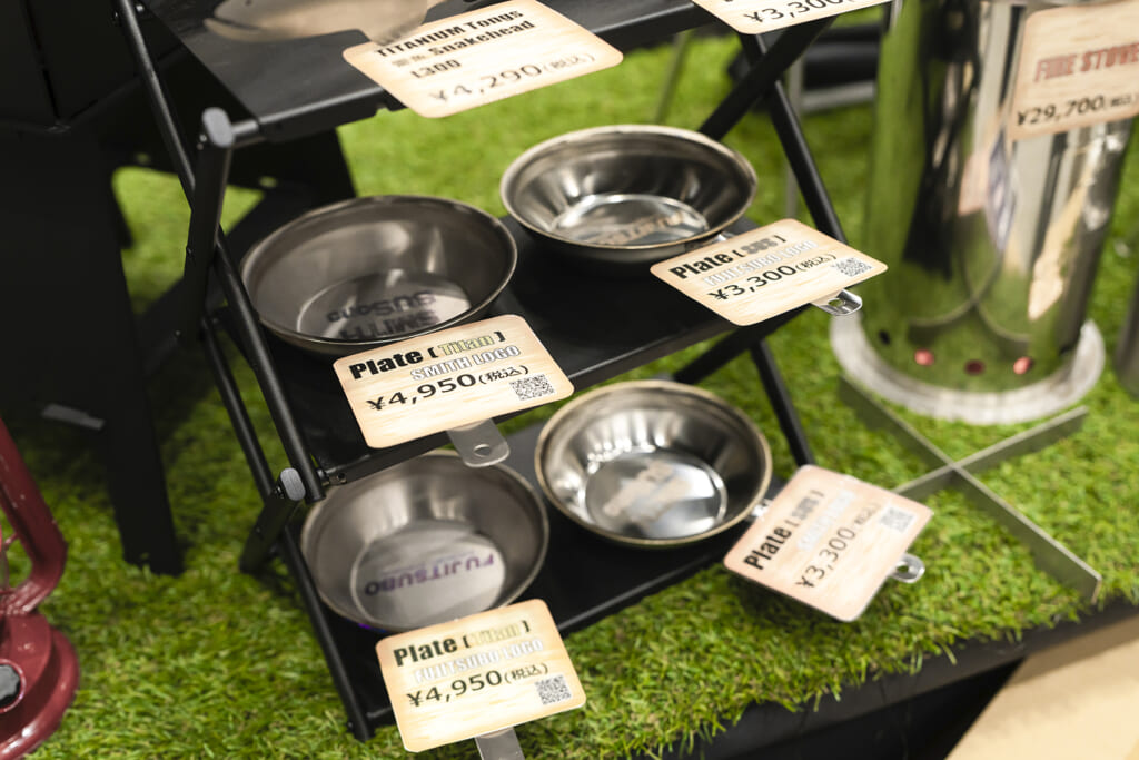 それがよく現れているのがバーベキューコンロです。本体の2カ所には網ズレ防止のストッパーが付き、取っ手はフランジをボルトを介して取り付ける構造になっているため熱が伝わりにくい仕組み。細やかな配慮が随所に見られます。さらにラインアップには、小皿として使えるステンレスプレートやたき火台などもそろっています。