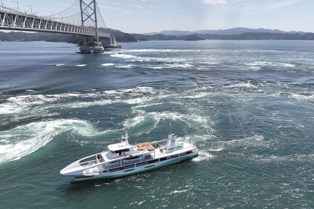 日本三大急潮のひとつが、瀬戸内海の播磨灘と太平洋の紀伊水道を結ぶ鳴門海峡。イタリアのメッシーナ海峡、カナダのセイモア海峡と並び「世界三大潮流」にも数えられます。潮流の速さは大潮の満潮時に時速20km以上に達し、日本一とも言われます。