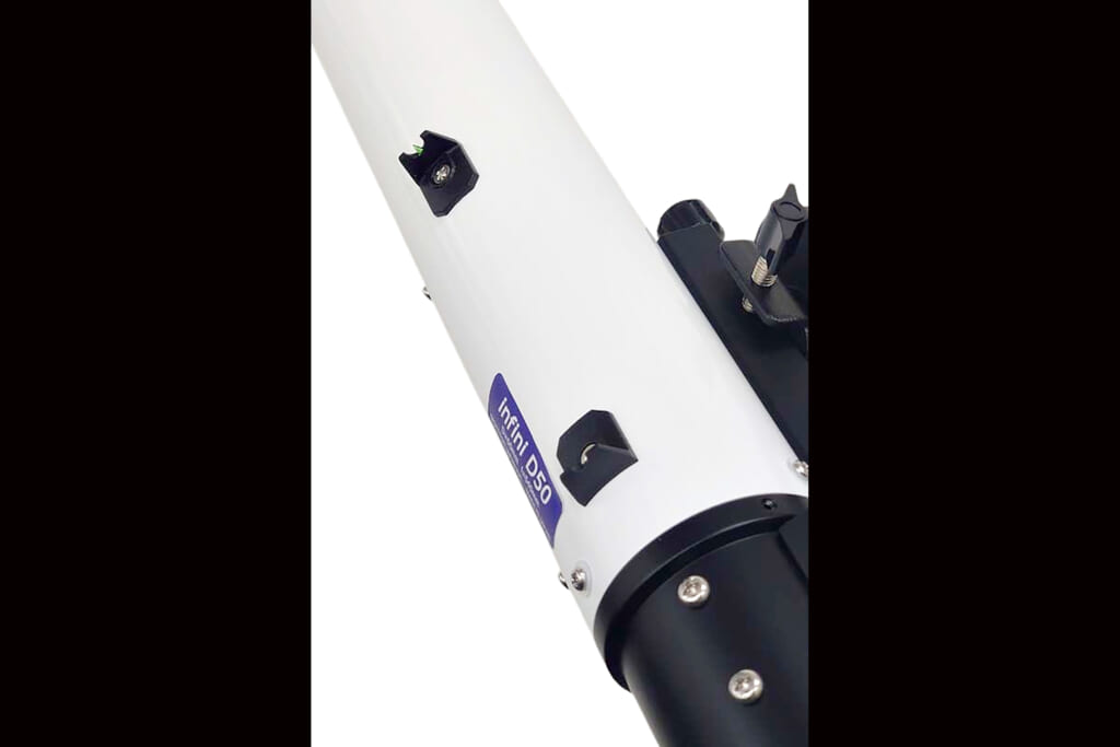 「infini D50」は口径比F10.8の設計で色や形のにじみを抑え、シャープな像を実現。レンズ性能を最大限に引き出すため鏡筒内にはつや消し塗装や絞り環を施し、迷光を低減しました。コンパクトながら月のクレーターや木星のしま模様、ガリレオ衛星、土星の輪まで観測可能。初心者から愛好家まで満足できる仕上がりです。