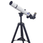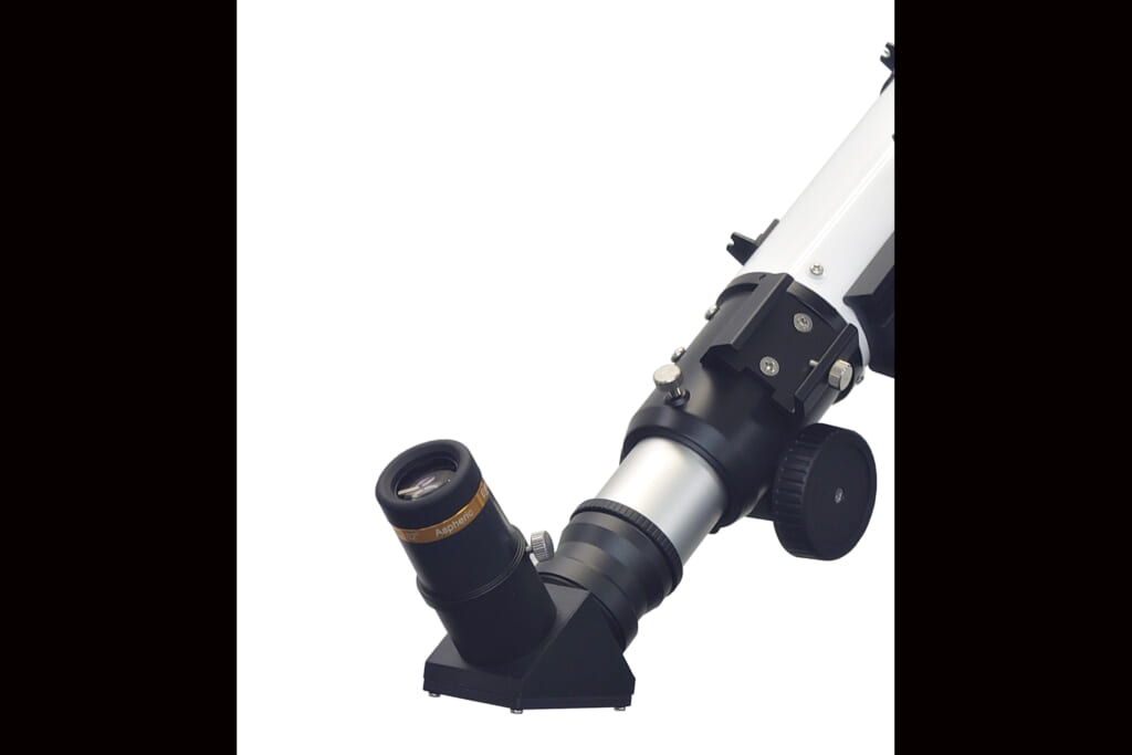 10mm(54倍)と23mm(23倍)の広視野アイピース各1本に加え、天頂ミラーを同梱。見口が大きく初心者でものぞきやすい設計です。天頂ミラーを使えば楽な姿勢で高度の高い天体を観測できます。