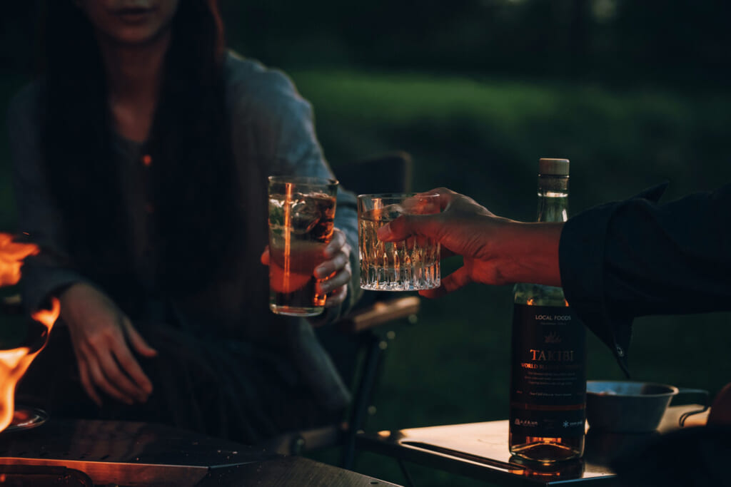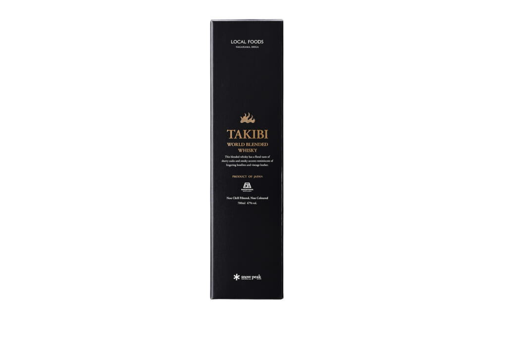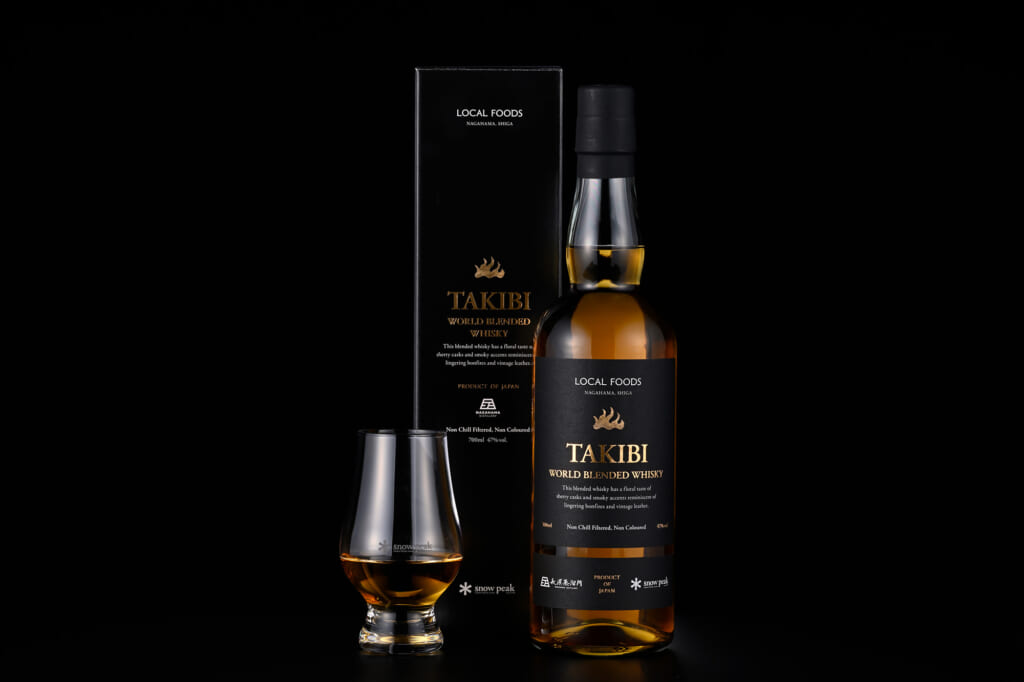 今回、長濱蒸溜所と食を通じた地域活性化に取り組むスノーピークローカルフーズが出会い、キャンプに寄り添う特別なウイスキーが生まれました。今回発売する「TAKIBI World Blended Whisky」は、少し肌寒さを感じる野外で、焚火の炎を眺めながらゆったりと味わっていただきたい、という想いを込めて仕立てた一杯です。