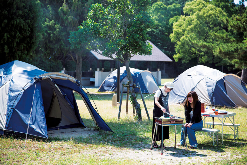 次にご紹介するのは、塩づくりで知られる伯方島にあるキャンプ場「ドルフィンファームしまなみオートキャンプ場」。しまなみ海道沿いに位置し、クルマで約1分の場所にはレンタサイクルターミナルを備えた道の駅「伯方S・Cパーク」があります。