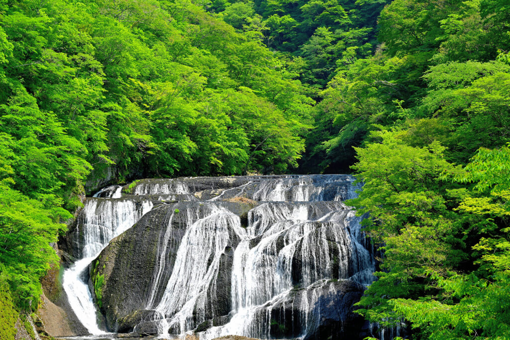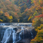 夏の新緑や秋の紅葉はもちろんのこと、冬に滝が凍結することで見られる「ブルーアイス」の美しい色合いが人気を集めています。1931年に国の名勝に指定されており、見学用のエレベーターも完備。滝の美しさを間近で見られる絶景スポットまで運んでくれます。