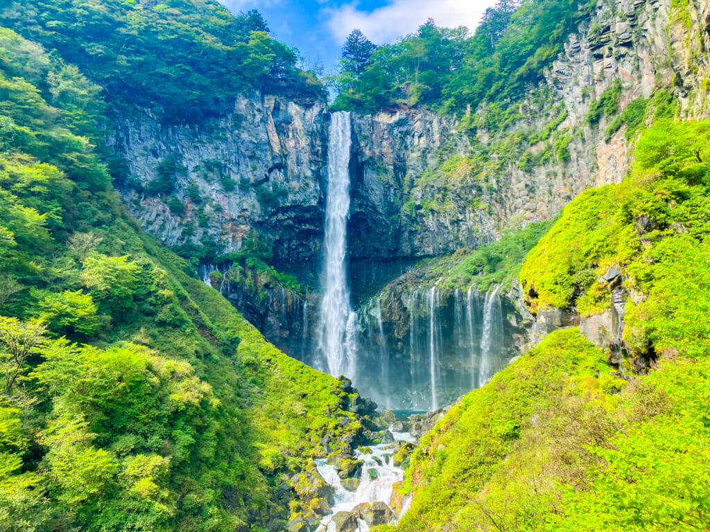 栃木県日光市にある「華厳の滝」は、1200年前に日光を開山した勝道上人が発見したと伝えられています。同地の中禅寺湖は男体山の噴火によってできた日本一標高が高い湖で、滝へと繋がる大谷川が唯一の流出口。さすがの水量と落差による勢いは華々しさと荘厳さに満ち、「華厳の滝」の名にふさわしい威容を誇ります。パワースポットとして知られているのも納得ですね。