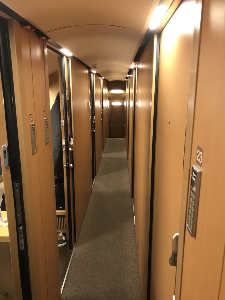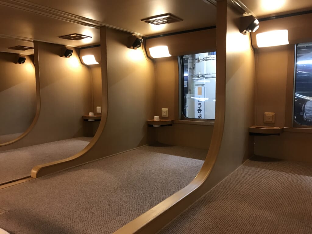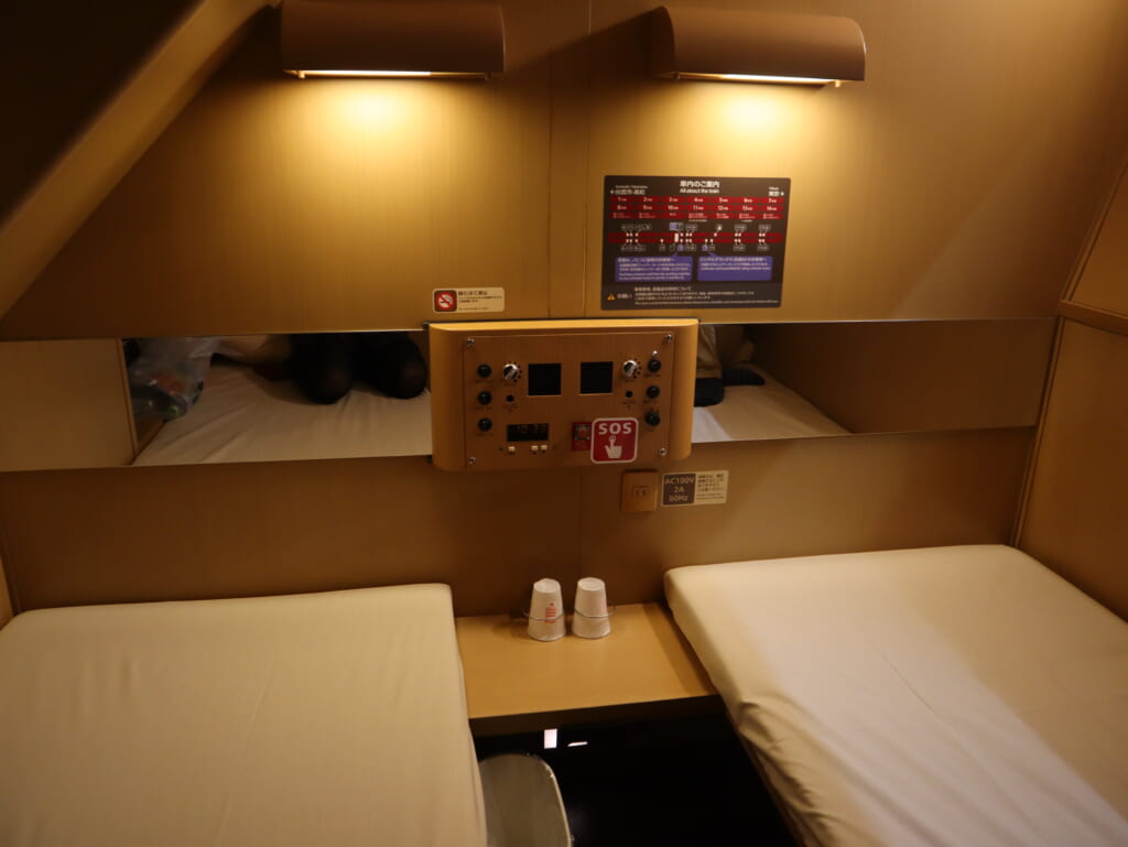 個室の内装には住宅メーカーが携わっており、居住性は抜群。各部屋には充電用コンセントやパジャマなどが用意されています。快適なうえに、目的地によっては飛行機・新幹線よりも早く到着するため、週末や繁忙期はチケットの争奪戦が起こるほど。