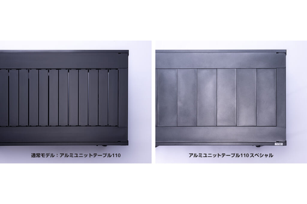 累計5万台突破を記念して発売される「アルミユニットテーブル110スペシャル」(税込1万9,990円 )は、人気モデルの機能性と拡張性を継承しつつ、所有欲を満たす特別な仕様が盛り込まれています。