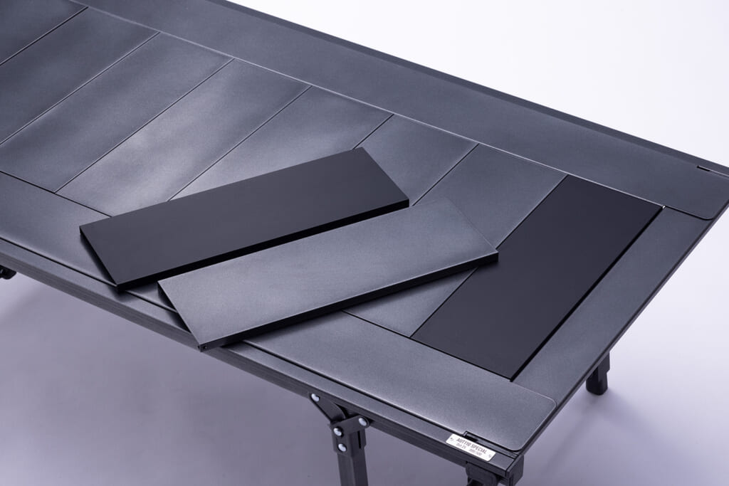 アルミ天板(価格799円 税込)は、テーブルの空いたユニットスペースを埋めたり、テーブルをブラックカラーにカスタマイズしたりするのに最適です。これらのオプションアイテムは、すべて2025年10月17日(金)に限定テーブルと同時発売されます。