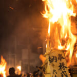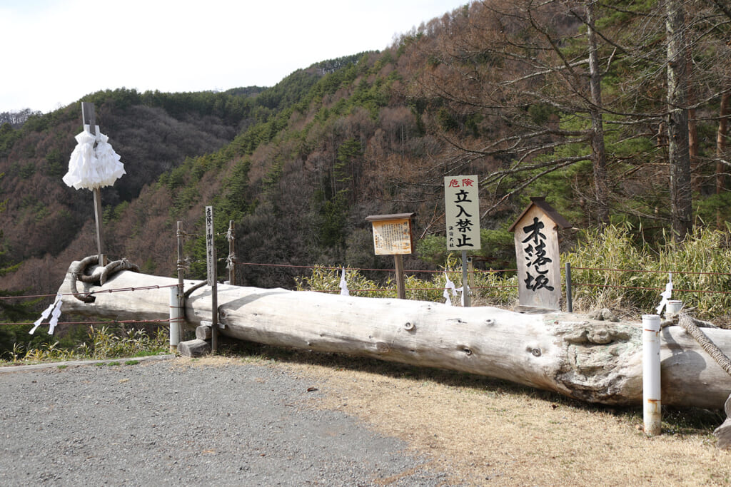 なかでも有名なのが「木落し(きおとし)」。氏子たちが巨木にまたがり、傾斜35度・長さ100メートルもの急坂を一気に滑り落ちるという迫力満点の神事です。巨木が傾斜を滑り落ちる際の振動や轟音、歓声と緊張感が入り混じる空気は、まさに現地でしか味わえない臨場感。見る人の心をつかんで離さない、大迫力の祭りです。