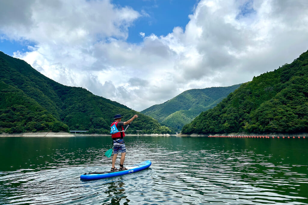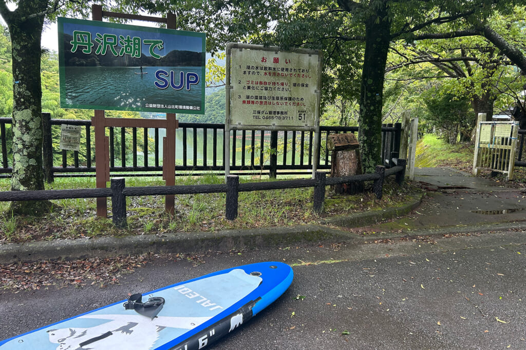 丹沢湖へは東名高速・大井松田インターチェンジから、国道246号経由で20km、約30分で到着します。丹沢湖でSUPするには、まず丹沢湖記念館で登録手続きをします。SUPは4月から11月まで出艇可能です。