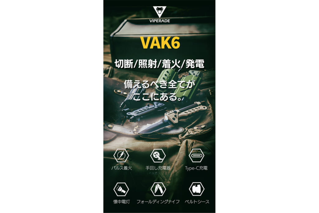 キャンプや登山、そして予期せぬ災害……。「もしも」の時に本当に頼れる道具とは何か? 従来のマルチツールは多機能である反面、個々の機能が中途半端になりがちでした。株式会社F&HARUはこの課題を解決するため、アウトドアでも非常時でも「本当に使える機能」を厳選し、「切る、照らす、火を起こす、発電」という4つの核となる機能をひとつのギアに凝縮したのが「VAK6」です。