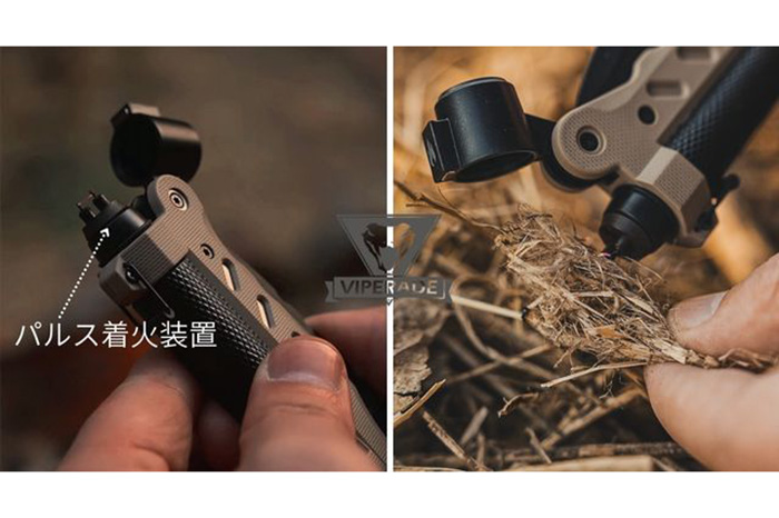着火機能にはガスを不要とし、環境にも優しい電子式パルスアーク着火システムを搭載。風の影響を受けにくく、焚き火や調理の火起こしが瞬時に行えるため、非常時における暖房や調理の確保にも欠かせない機能です。