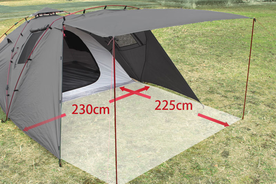 タープ不要! 広い日陰スペースを作る前室付き設計