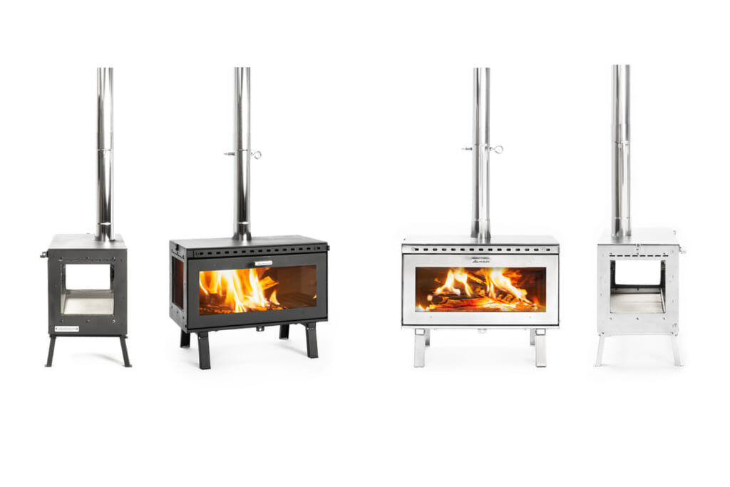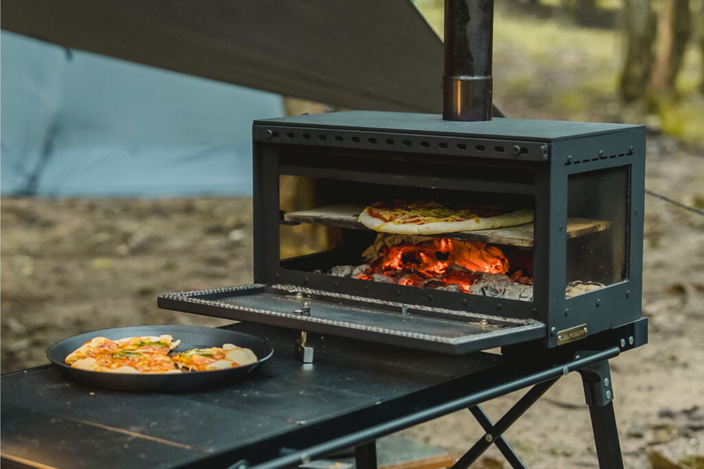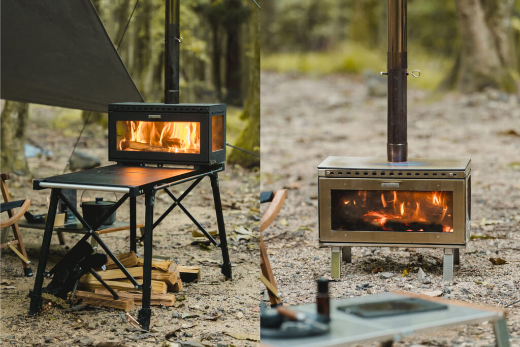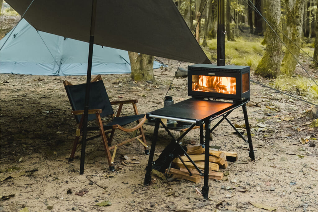 今秋発売予定の「ヴァーサテーブル」に設置すれば、テーブルの高さで薪ストーブを眺めながら楽しむことができます。ヴァーサテーブルは高さ調整が可能で、薪ストーブを使用する際は45cmの高さで設置できます。まるで“持ち運べるオーブン”のような感覚で、特に料理をじっくり楽しみたい方におすすめの新しいスタイルです。