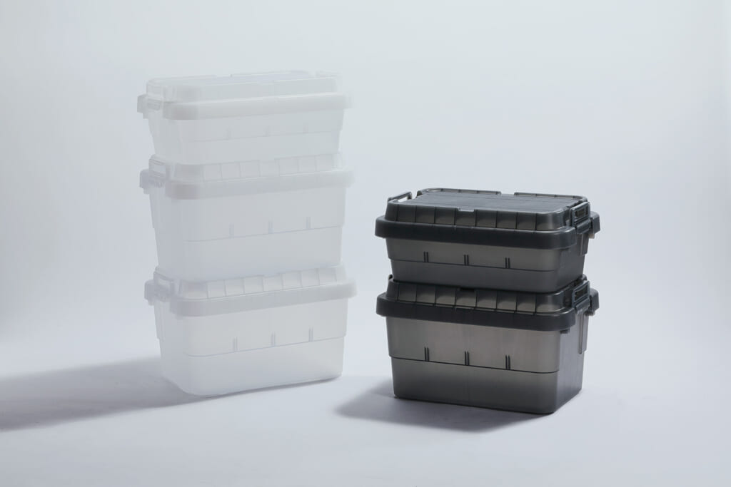 今回新たに登場したクリアカラー2色は従来の「頑丈でタフな収納」という特徴はそのままに「中身が見える」という付加価値をプラス。これにより従来の課題であった「蓋を開けないと中身がわからない」というストレスを解消。トランクカーゴが活躍するシーンをアウトドアから室内での防災備蓄、業務用途の備品管理まで大きく広げることが期待されます。