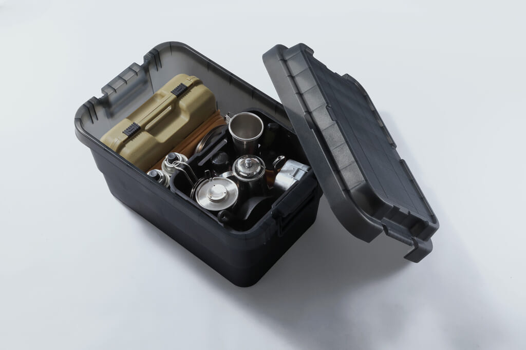 また、トランクカーゴの特徴であるフタをしっかりロックできるバックルと、雨やほこりが入りにくいフタの構造は収納物を堅牢に守り、いざという時まで備蓄品の品質を保ちます(※ただし、完全防水ではありません)。