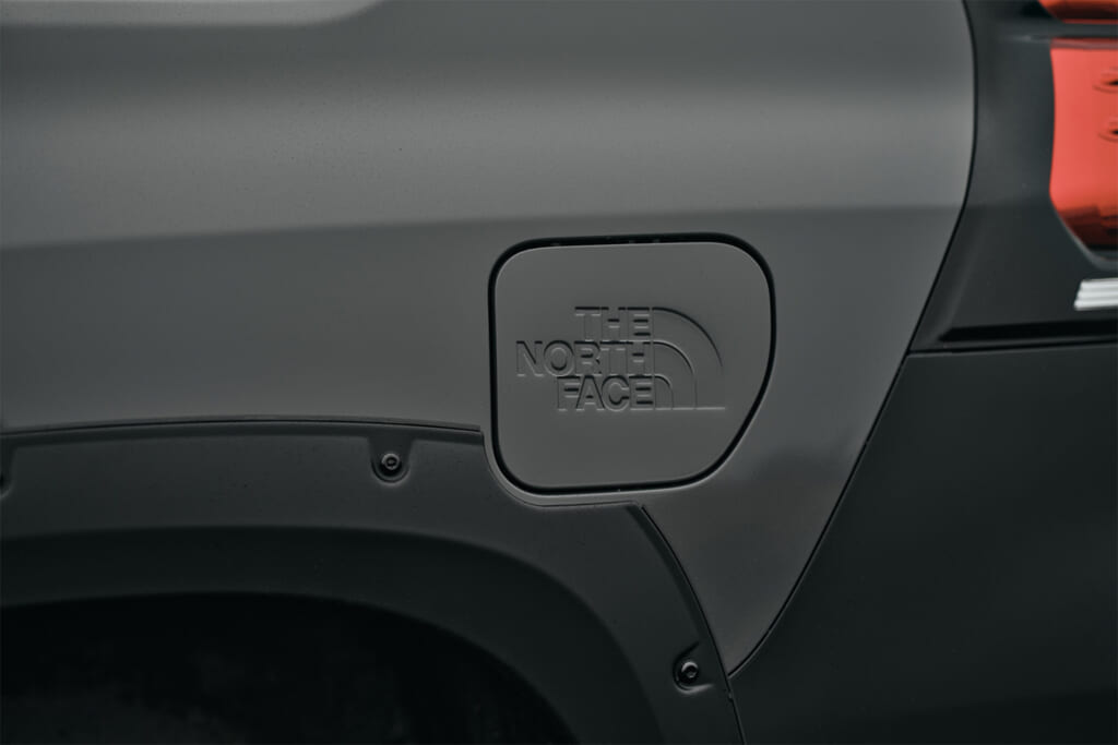 また、さりげない主張としてフューエルリッド(給油口の蓋)には、THE NORTH FACEのロゴがインクリメンタルフォーミング(逐次成形加工技術)で配置され、その他マッドガードには両社のロゴが入り、後ろ姿までスタイルが計算されています。