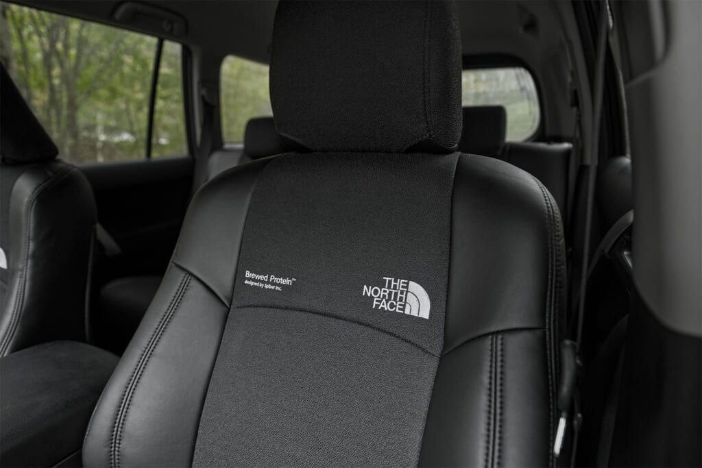 エクステリアとインテリアのデザインプロデュースは、THE NORTH FACEチームが担当しました。同ブランドのプロダクトからインスピレーションを得たカラーリングと意匠が、車両全体に施されています。