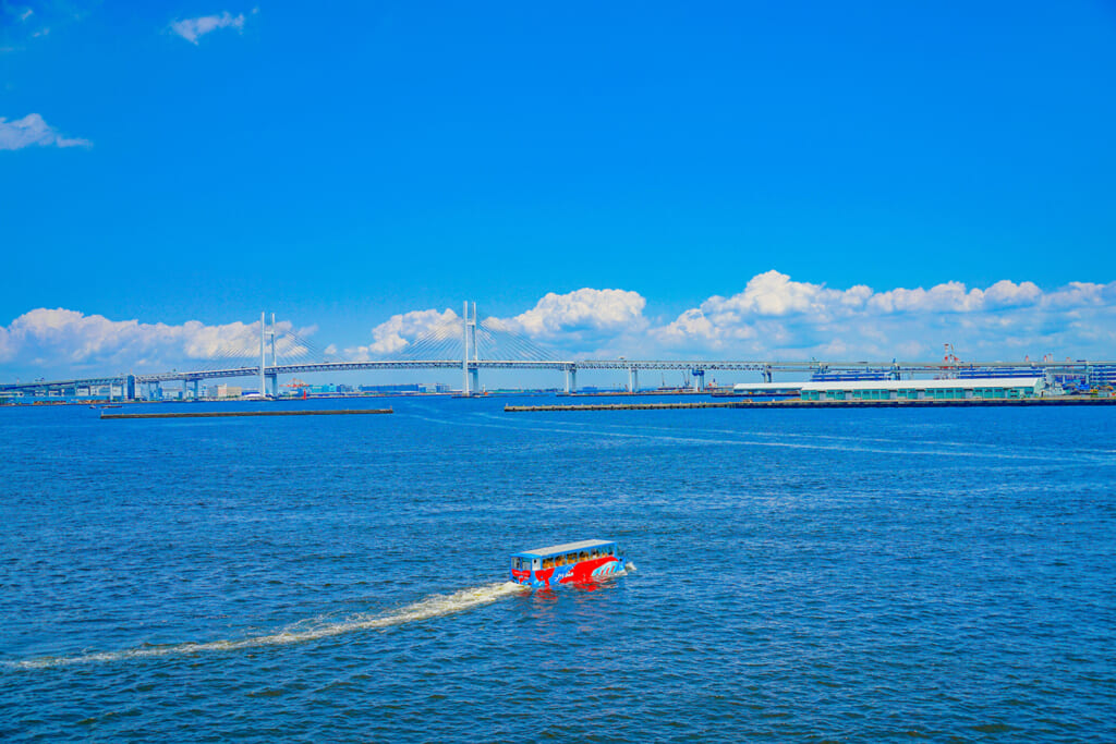 水陸両用バスを用いた観光ツアーは国内の色々な場所で企画されています。たとえば日の丸自動車興業が運行する「スカイダック」では、東京や横浜で名所を駆け抜けるツアーを開催。