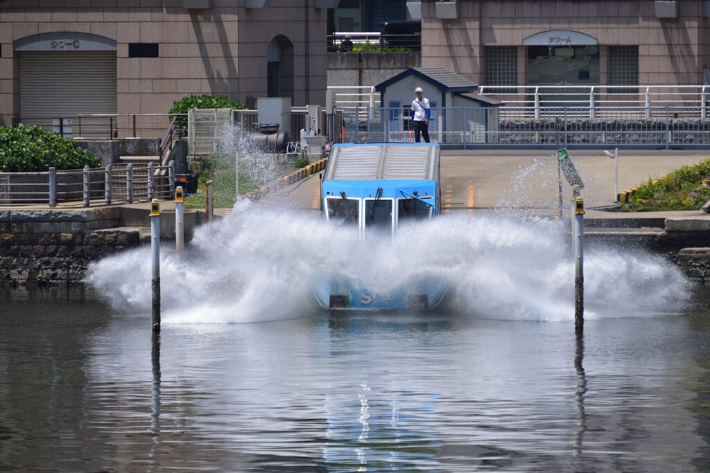 水陸両用バスを用いた観光ツアーは国内の色々な場所で企画されています。たとえば日の丸自動車興業が運行する「スカイダック」では、東京や横浜で名所を駆け抜けるツアーを開催。