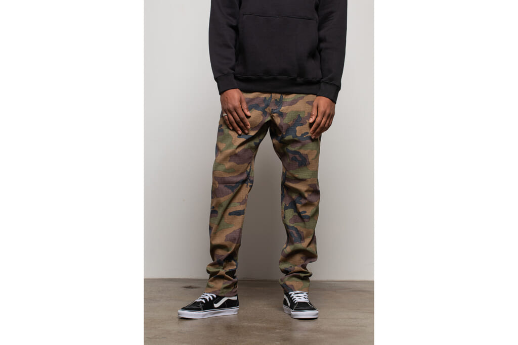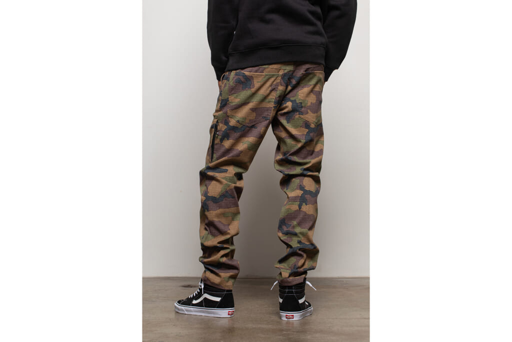 今回登場する新色「ダークカモ」は、伝統的なミリタリーテイストを極限まで洗練させ、都会的なセンスとシームレスに融合する落ち着いたカモフラージュパターンを採用。機能美に溢れたテクニカルパンツに、高いファッション性を加えることで、カジュアルな日常からアウトドアフィールド、さらにはビジネストラベルまで着用シーンを限定しない万能性をさらに高めています。
