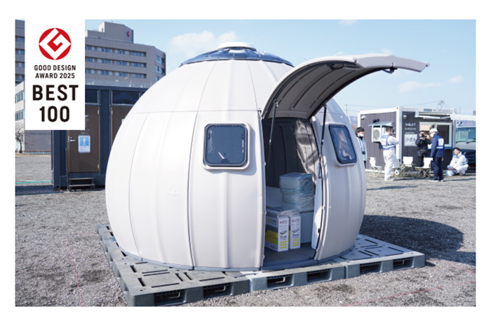 EZDOME HOUSEは、地震、台風、豪雨といった予測不能な自然災害から、地域社会に暮らすすべての人々の「いのち」を守るために生まれた革新的なデザインです。旧態依然とした日本の避難所生活からの脱却を目指し、単なるプレハブ建築ではない、「人命を守るための必然のデザイン」として高い評価を獲得しました。