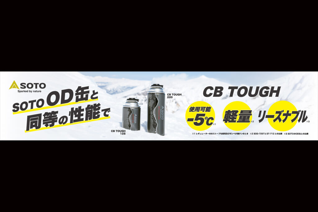 アウトドアブランド「SOTO(ソト)」を展開する新富士バーナーが寒冷地でも安定した火力を発揮するカセットボンベ「CB TOUGH(シービー タフ)」の購入キャンペーンをスタート。