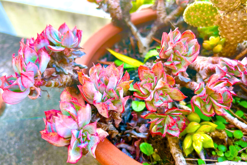 アウトドア遊びのひとつとして家で菜園&ガーデンニングを楽しむ、自称ソトラバニスト(外で遊ぶの大好き人)の筆者は、過去にオクラの花、ナスの花、サボテンの花、ゆりの花、枝木から根が出たさくら、シャクヤクの花、金木犀の花など、花シリーズのレポートをお届けしていましたが今回は多肉植物とサボテンの紅葉です。