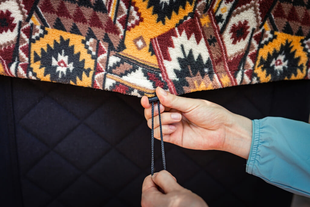 キャンプでチェアを使うのは、多くの場合焚き火の近く。そのため難燃生地を採用し、焚き火の火の粉が飛んでも燃え広がりにくい設計になっています。なお、装着は被せてドローコードで固定するだけなので、様々なタイプのチェアで使用可能(背もたれ幅約51cmまで対応)。