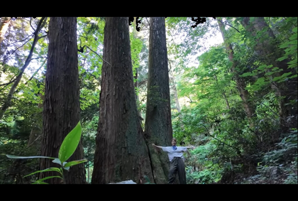 木々の間から差し込む柔らかな日差しと、ひぐらしの鳴き声が響く山道は、まるで森林セラピーを受けているかのような心地よさです。道中、目の前に現れたのは、カメラに収まりきらないほどの太い杉の木。その圧倒的な存在感に、自然の偉大さを改めて感じさせられます。