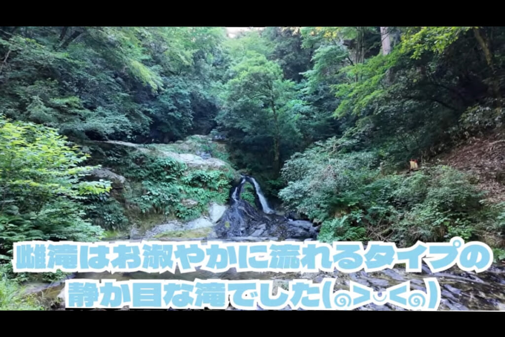 そしていよいよ、「龍頭ヶ滝」へ。最初に訪れた「雌滝」は、静かに、そしておしとやかに流れていて、どこか心がほっと癒やされます。近くまで寄ることはできませんが、それでも十分にマイナスイオンを感じられ、自然の恵みに深く浸るひとときとなりました。