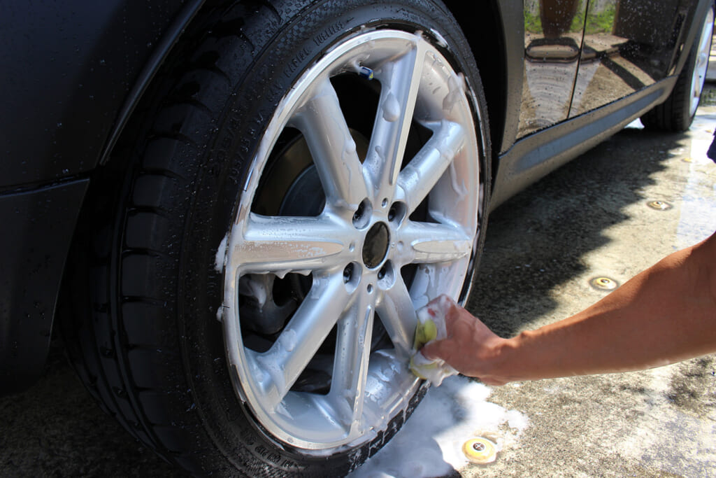 泥汚れを落としていると、ボディに黒い点がついていることがあります。これは「ピッチタール」といって、泥汚れではなくアスファルトがタイヤに巻き上げられて付着したもの。ピッチタールは普通のカーシャンプーでは落とせないので、専用のクリーナーを使って落としましょう。