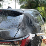 泥で汚れたクルマを洗う際は、たくさんの水をかけて泥を柔らかくしてから高圧洗浄機で汚れを落とします。高圧洗浄機がない場合は、ホースで十分に水をかけて泥を流したあとに、スポンジやクロスを使って優しく撫でるように洗いましょう。天気が良いとすぐに泥が乾いてしまうので、曇りの日か、直射日光が当たらない場所での洗車がおすすめです。