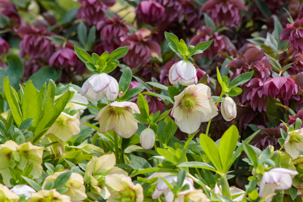 新品種が数多く出ていて、一重咲きや八重咲などがあり、花色も白、ピンク、緑、黒、複色などがあり、お庭の雰囲気に合わせて選べます。