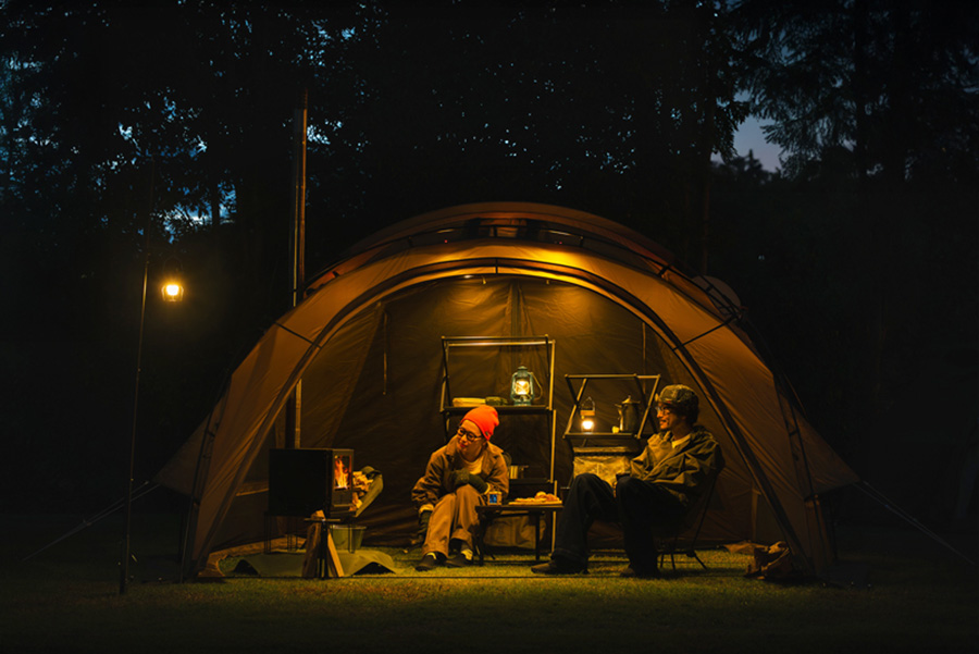 企画担当者は、「薪スト入れてみたい、お座敷コタツしてみたい、天井窓から星観たい、フェスでドヤ顔したい。やってみたいをこれでもかと詰め込みました。」また、広報担当のヒトコトとして「透明窓オプションもDOD初の試み。幕内でぬくぬくと過ごしながら景色を楽しめるほか、雨の日でも閉塞感なくおこもりキャンプを満喫できます。」DODは、この『ガシーンドーム』を通じて、キャンパーの「やってみたい」という遊び心に応え、年間を通じて自由で快適なキャンプスタイルを提案してまいります。