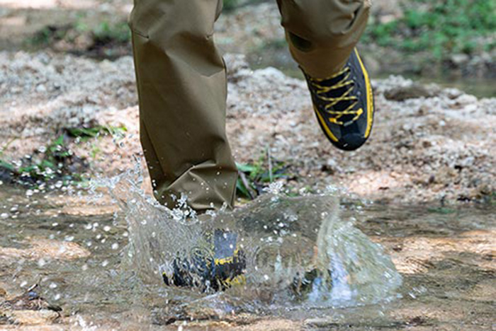 さらに、経年劣化しやすいポリウレタンを使用せず、生地の織り構造でストレッチ性を持たせる「メカニカルストレッチ」を採用。パンツの型崩れやヘタりを軽減し、濡れても弛みにくいという特徴を備え、長期間にわたって高い性能を維持します。