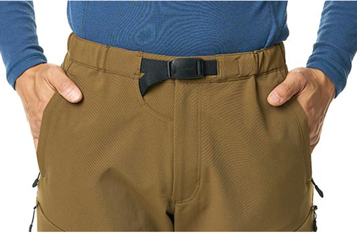 太もも部に配置されたリンクベント™(ベンチレーション)により、行動中の体温調節が容易に行えます。さらにベルトの末端を右ポケットに収納できる仕様により、行動中にベルトが邪魔になることを防ぎます。