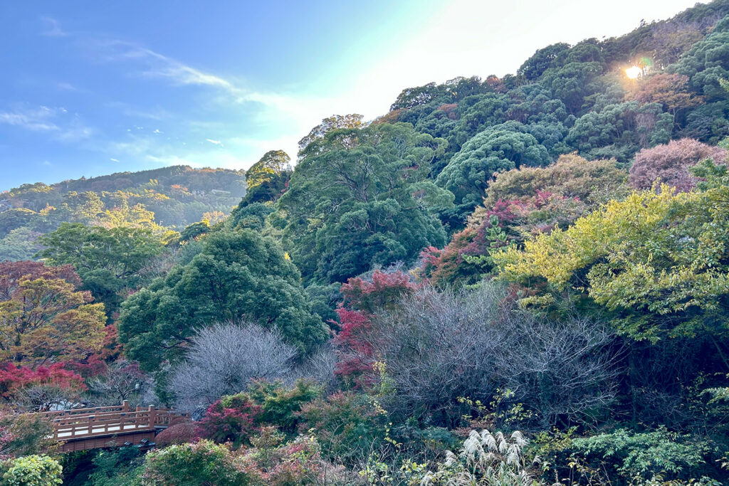 12月に入ってますます寒さが身に染みる晩秋の日々です。東京からもほど近く、最近人気の静岡県熱海市の熱海梅園に紅葉狩りに行ってきました。温泉地としてもほっこり暖かい熱海は日帰りでも楽しめる人気のスポットです。熱海梅園は元々は国内初温泉療養施設、噏滊館(きゅうきかん)に併せた遊歩公園だったとか。