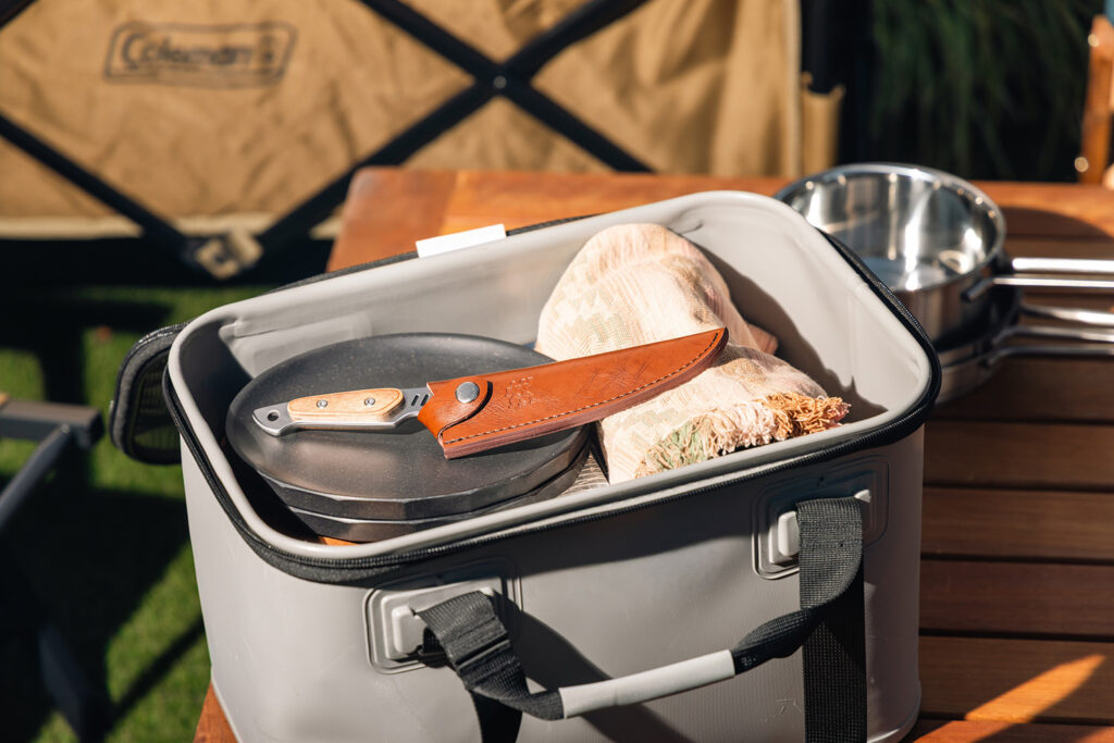 タフな削り出しの一体構造、錆に強い特殊ステンレス鋼材「CMV60」、そしてDIY感覚で取り付けられるパッカーウッド製のカスタムハンドルキット。これに専用の天然牛革製シース(鞘)を組み合わせることで、「オリジン」は単なる調理器具ではなく、ユーザーと共に成長し、愛着を持って使い続けられる新しい相棒となり、本格的なアウトドアクッキングの可能性を広げ、キャンプやブッシュクラフトなど、過酷な環境での料理体験を新たなステージへと引き上げます。