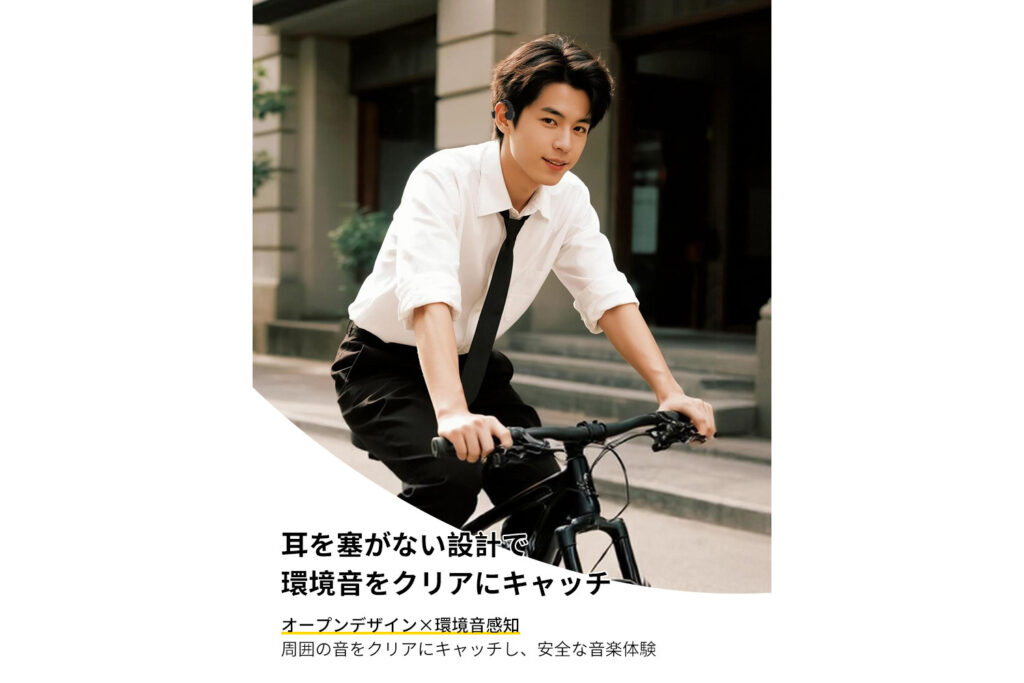 振動で音を伝えるため、車道の音、後方からの自転車ベルなど、必要な環境音をしっかりキャッチ。通勤中のスマホ通知や電話もすぐ確認でき、ビジネスパーソンの毎日をよりスマートにサポートします。