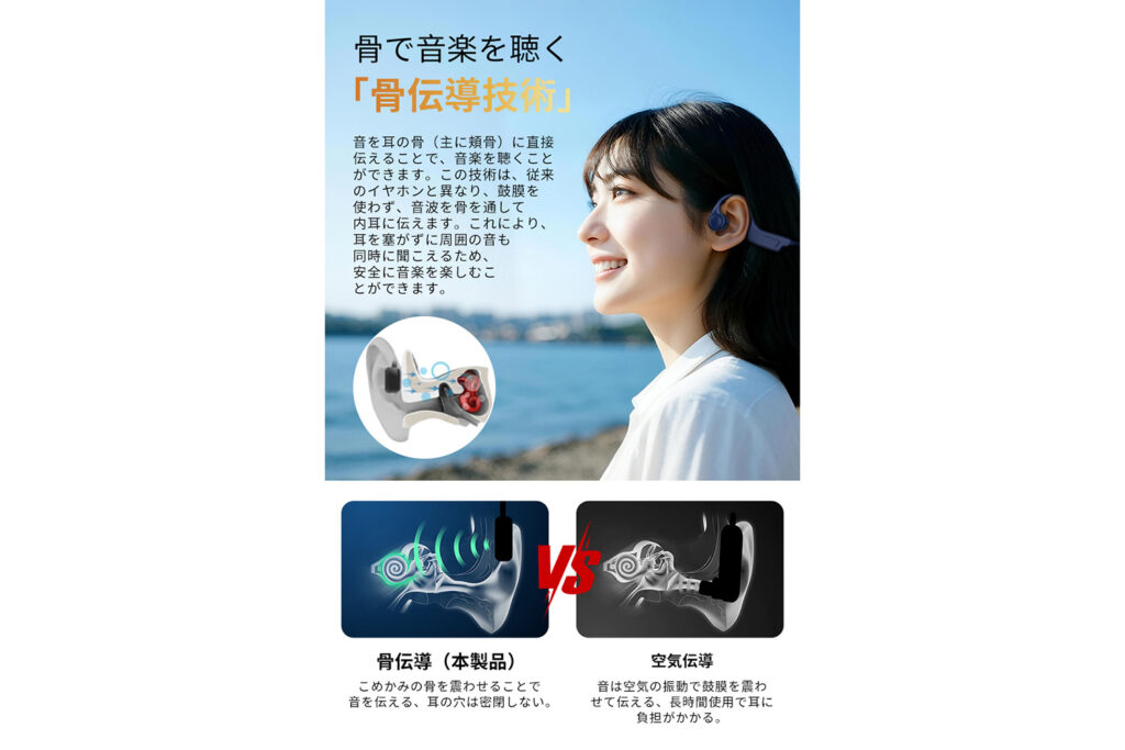 耳を塞がない“リアル骨伝導”で、屋外でも安心・快適