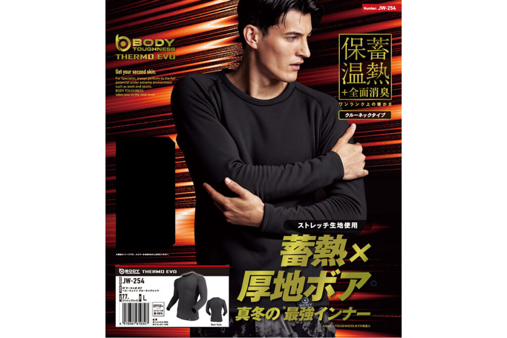 1926年創業の老舗軍手メーカー、おたふく手袋が展開する機能性インナーウェアブランド「BODY TOUGHNESS(ボディタフネス)」は、2025年秋冬の新商品として、ブランド史上最強の保温力を誇る「サーモエボ ボア シリーズ」を発売します。
