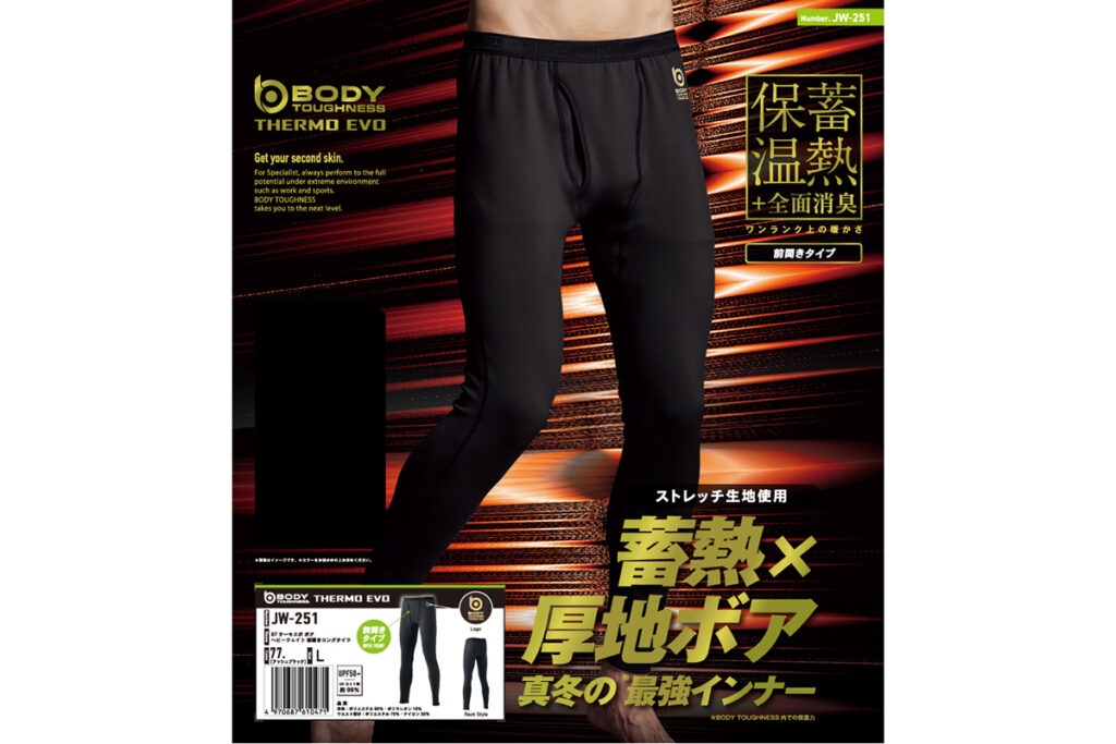 老舗メーカーならではの信頼性と、最新の機能素材を融合させたBODY TOUGHNESSの製品は、全国の作業服店、ホームセンター、プロショップ、ネット通販サイト等で販売されています。極寒の季節を快適に、そしてアクティブに過ごすための「サーモエボ ボア シリーズ」を、ぜひお試しください。