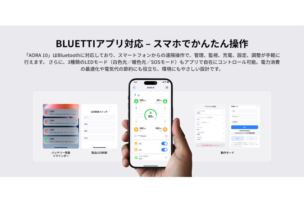 「モバイルバッテリーでは足りない」というユーザーの声に応え、日常からアウトドア、そして万一の防災時まで、あらゆるシーンで幅広く活躍できる「AORA 10」は、“気づけば、暮らしの一部に”という理念のもと展開する日本市場向け「AORAシリーズ」のラインアップをさらに進化させます。