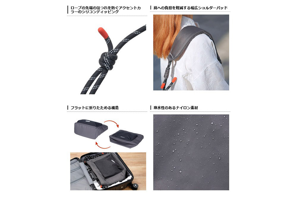 本シリーズは、ロープ状のショルダーストラップと、アクセントとなるビビッドなカラーリングを随所に散りばめた、遊び心とアクティブテイストあふれるデザインが最大の魅力です。高い機能性はそのままに、カメラバッグとしての無骨さを廃し、ファッションアイテムとしても映えるルックスを実現。日常使いのタウンユースはもちろん、キャンプ、フェス、旅行といったアクティブなレジャーシーンにおいて、カメラを軽快かつ安全に持ち運びたいユーザーのニーズに応えます。