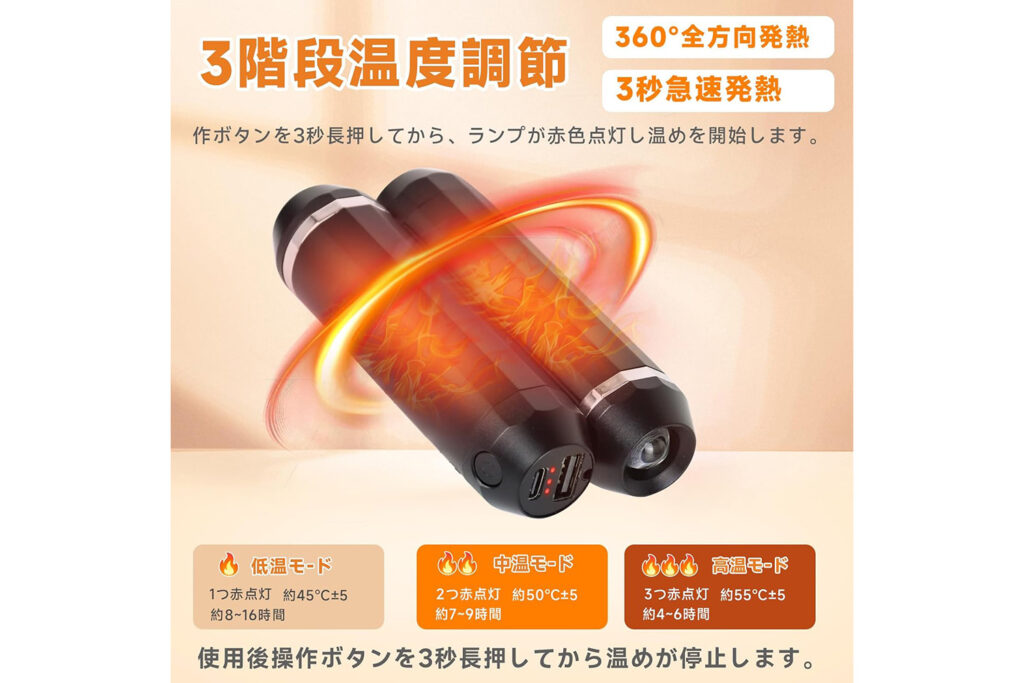 とくに革新的なのが、磁石による結合・分離設計と、360°全面発熱を実現した棒状デザインです。一台で極上の温もりを提供し、分離すれば大切な人と温もりを共有できる新発想のハンドウォーマーは、日常の通勤通学から本格的なアウトドア、さらには防災備蓄まで、あらゆるシーンでの活躍が期待されます。