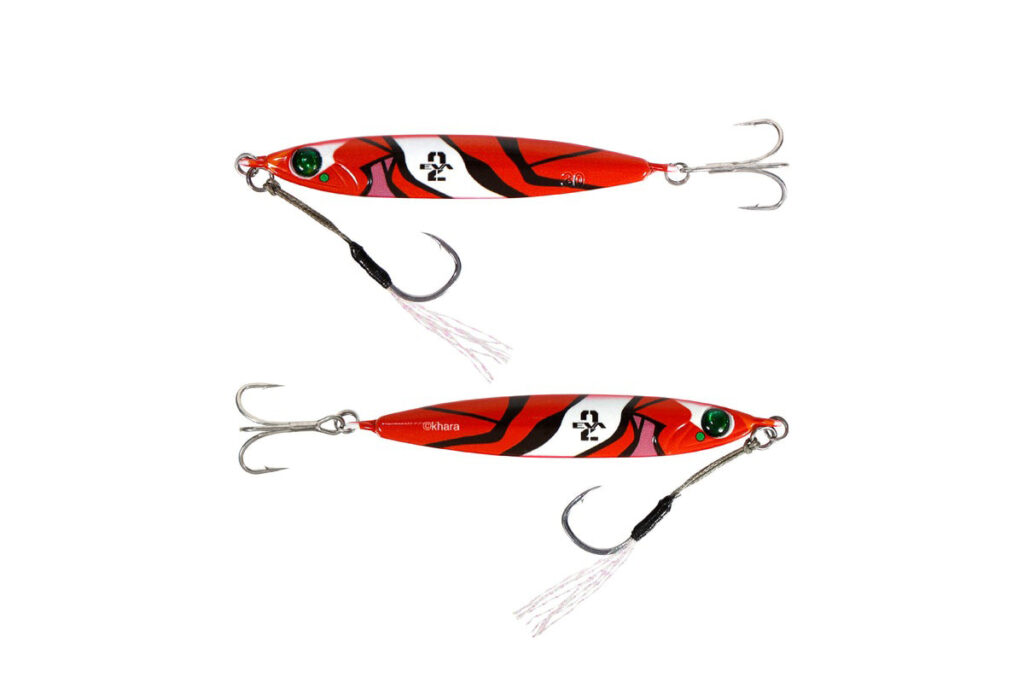 今回のコラボレーション第2弾では、2号機を象徴する赤とオレンジのコントラストをまとった、機能性抜群の実戦投入可能なアイテムが多数ラインナップされます。ベースとなる「ドレパンルアー」は、独自の微波動アクションで魚を誘う鉄板バイブで、超速巻きにも完全対応する万能ルアーです。