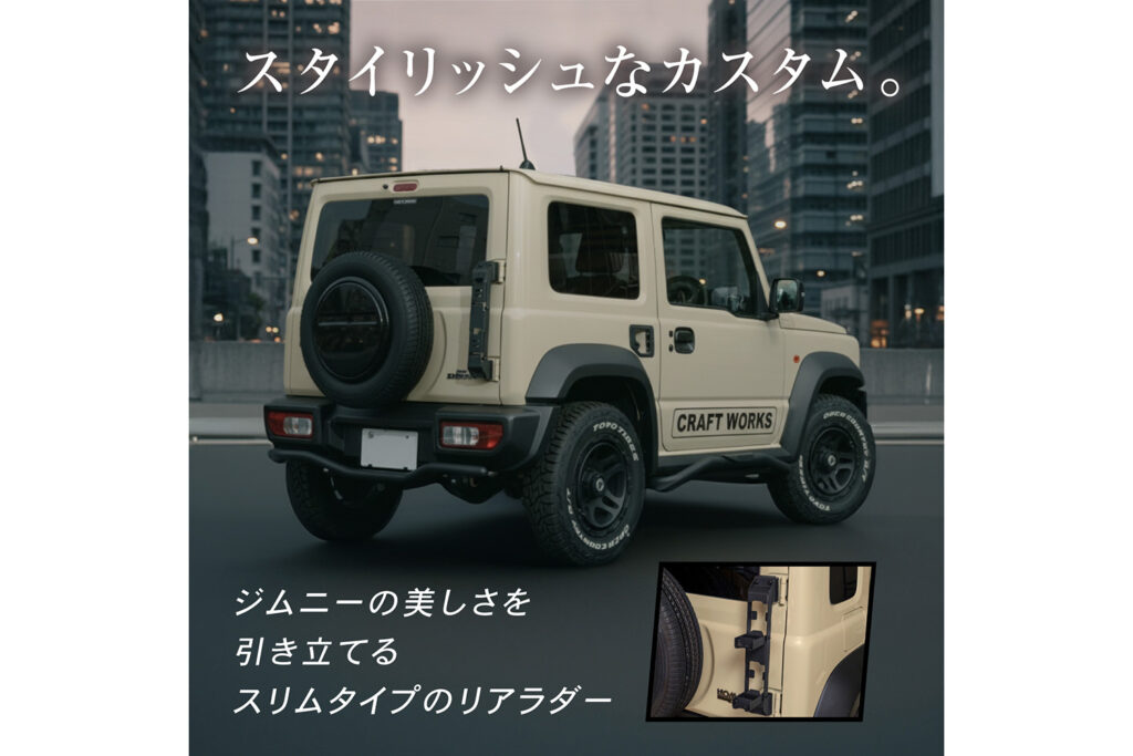 Fun Standardが展開する自動車アクセサリブランドCRAFTWORKS(クラフトワークス)は、長年のファンを持つSUZUKIジムニー/ジムニーシエラ/ジムニーノマド専用のカスタムパーツとして、「ジムニー専用リアラダー スリムタイプ」を開発し、2025年11月より予約販売を開始しました。