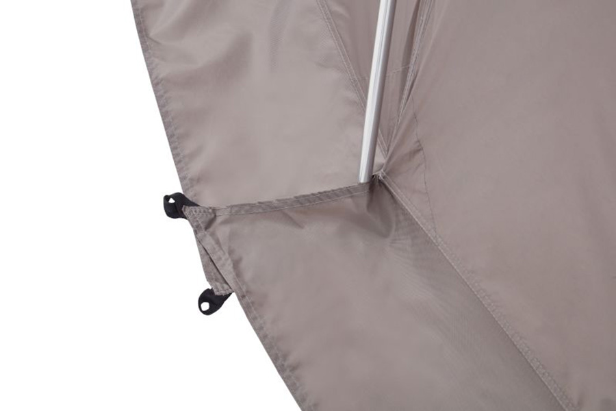 耐水圧約2,000mm の生地に加え、ルーフフライとフルスカートを標準装備しており、「タフシリーズ」最大の特長である雨風に強い耐久性も実現。